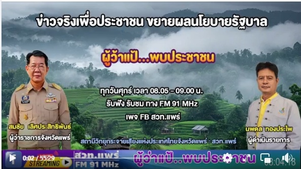 สถานี : สวท.แพร่ 91.00 MHz
